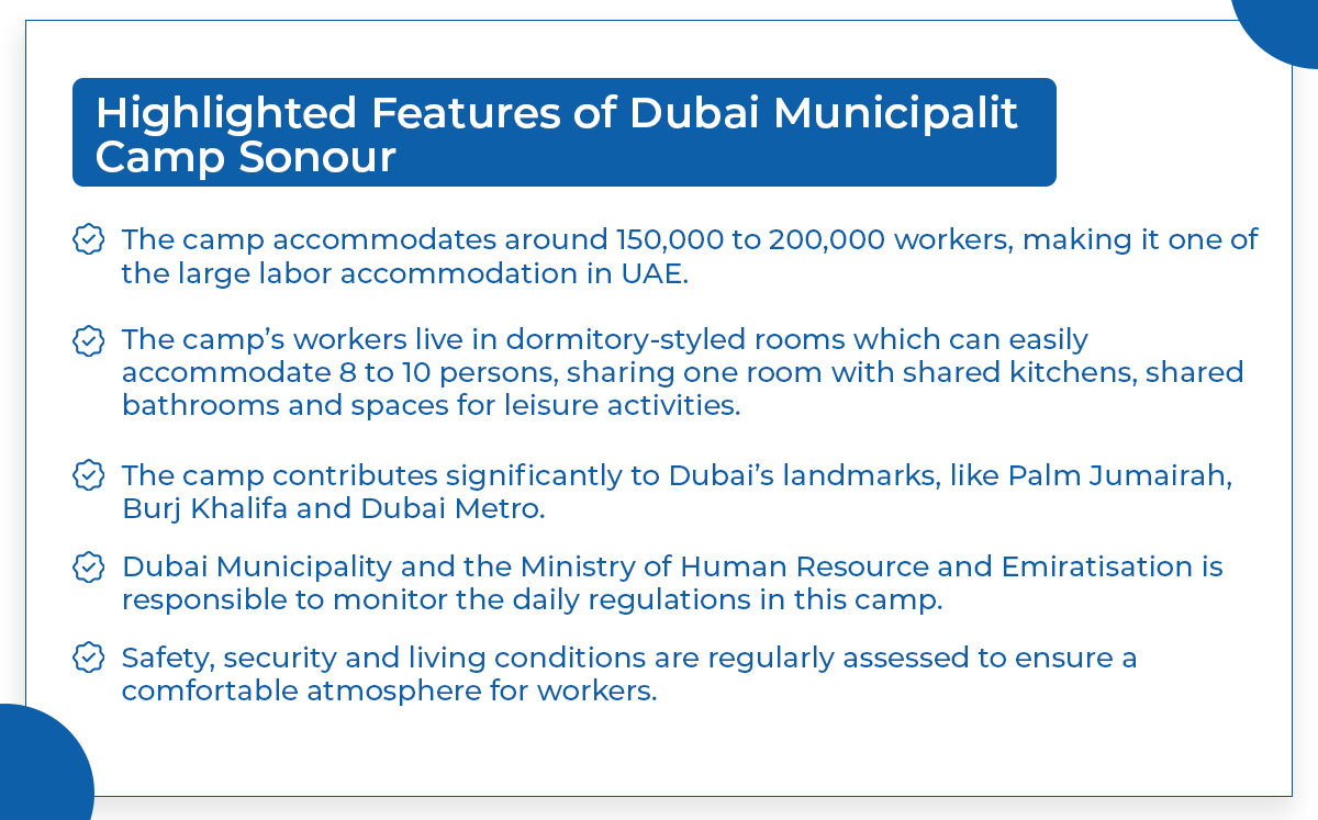 Dubai is known for its prominent shopping malls, iconic landmarks and architectural wonders. Behind its glamorous outlook, the city also house millions of workers who live in the labor accommodations like Dubai Municipality Camp Sonapur.