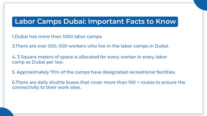 Labor camps in Dubai is an important feature of Dubai’s labor ecosystem. These streamlined facilities of labor accommodations ensure workers live in a comfortable atmosphere. These labor camps are regulated by Dubai Municipality and MOHRE thorough a strict system of regulations and through conducting regular inspections. By understanding the key regulations and management systems of labor camps in Dubai, we can gain a deep insight into the lives of workers who can contribute to Dubai’s fast paced economic growth.