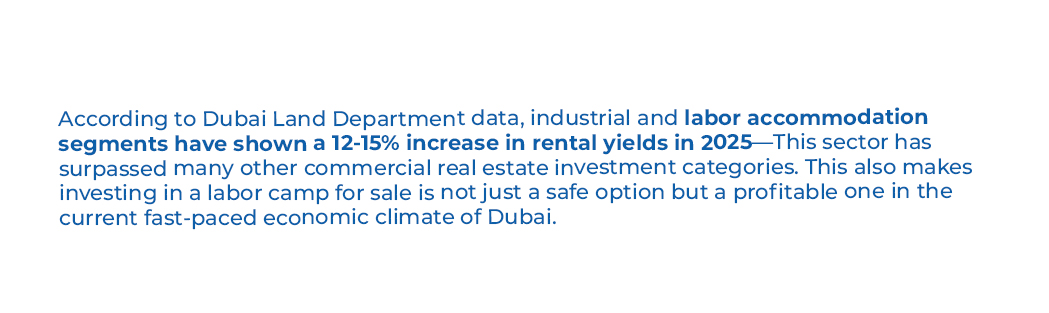 Dubai continues to stand as a global business hub in 2026—a home to thousands of manufacturing, construction and logistic companies employing a huge number of workers. With its ever-increasing workforce, the need to have high-quality, affordable and well-managed housing have never been greater as it is now. That’s the perfect reason to invest in labor camp for sale commercial property that has become an incredibly appealing investment in dubai opportunity for potential investors seeking for a stable and long term returns.